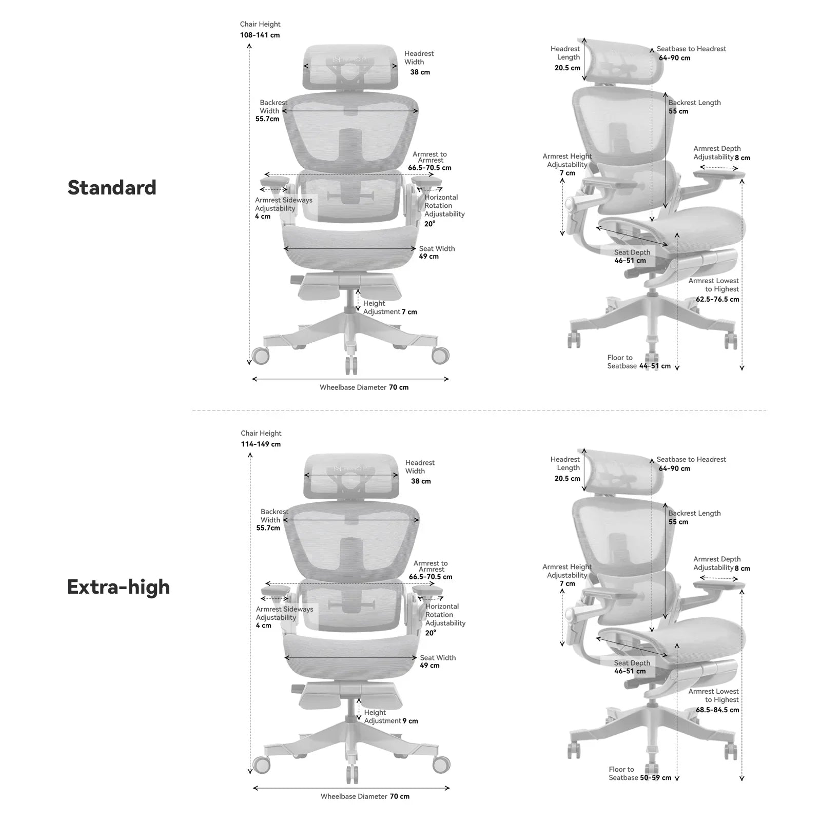 Backrest height and lumbar support tension adjustments ensure targeted support to your lower back, helping to reduce back pain and promote better posture.